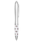Retractable curvy plastic barrel ballpoint pen with cow spot stock art comfort grip