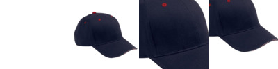 - Navy crown with contrast Red eyelets and button