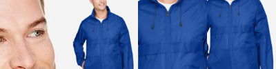2.3 oz./yd², 240T polyester pongee Unlined Water-resistant finish Chin guard Elasticized cuffs Underarm vents Adjustable shockcord at hem Center front reverse coil auto-lock zipper with reflective toggle Lower front concealed zippered pockets with reflective toggles Reflective piping at shoulder yoke and center back yoke Audio port access through inside lower left pocket