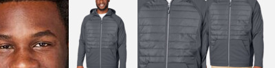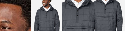 - Inside placket; roll-away hood; adjustable cuffs with tabs