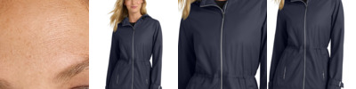 This water-resistant jacket has an on-trend fit and an ultra cool vibe thanks to its flattering length, curved drop tail hem, princess seams and welding details.