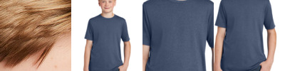 - 4.4-ounce, 75/13/12 poly/cotton/rayon jersey with PosiCharge technology