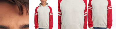 - 8.8-ounce, 70/30 cotton/polyester fleece hood and sleeves